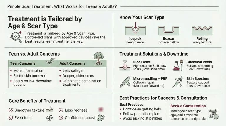 The best pimple scar treatment for teenagers often includes non-invasive options like chemical peels, Pico Laser, or mild microneedling.
